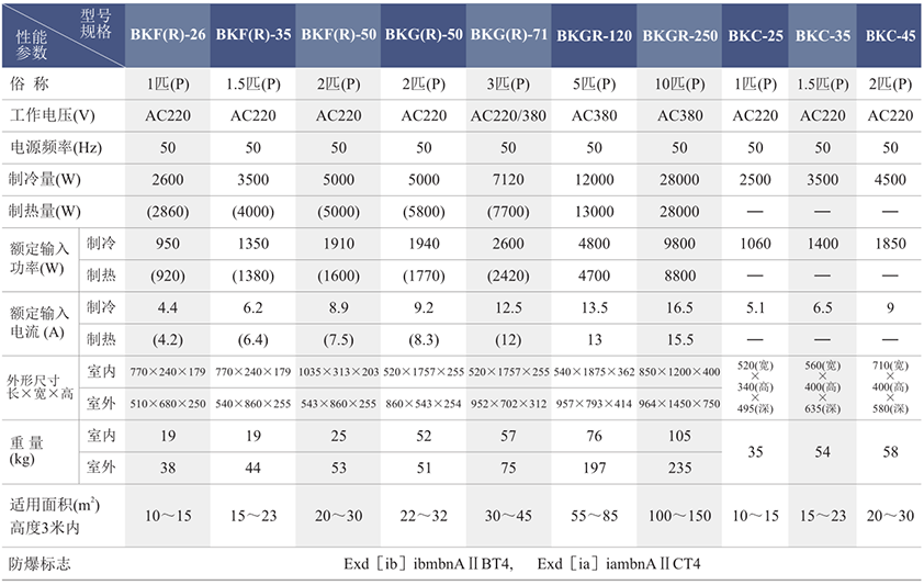 ◆防爆空調(diào)設(shè)備采用品牌空調(diào),經(jīng)特殊工藝處理和制造方法進(jìn)行防爆處理,一般情況下,掛式和柜式均采用“三菱”或“格力”;