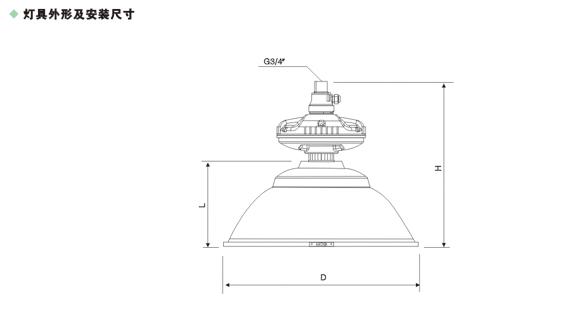 ●電纜進(jìn)線分G3/4"管內(nèi)直接進(jìn)線(適用管吊式安裝)或進(jìn)線腔側(cè)面進(jìn)線(適用掛吊式安裝)。