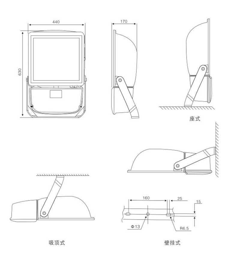 ●采用座式、壁掛、吸頂?shù)榷喾N安裝方式,可大范圍調(diào)節(jié)照明角度,滿足工作現(xiàn)場照明需要,操作簡單方便