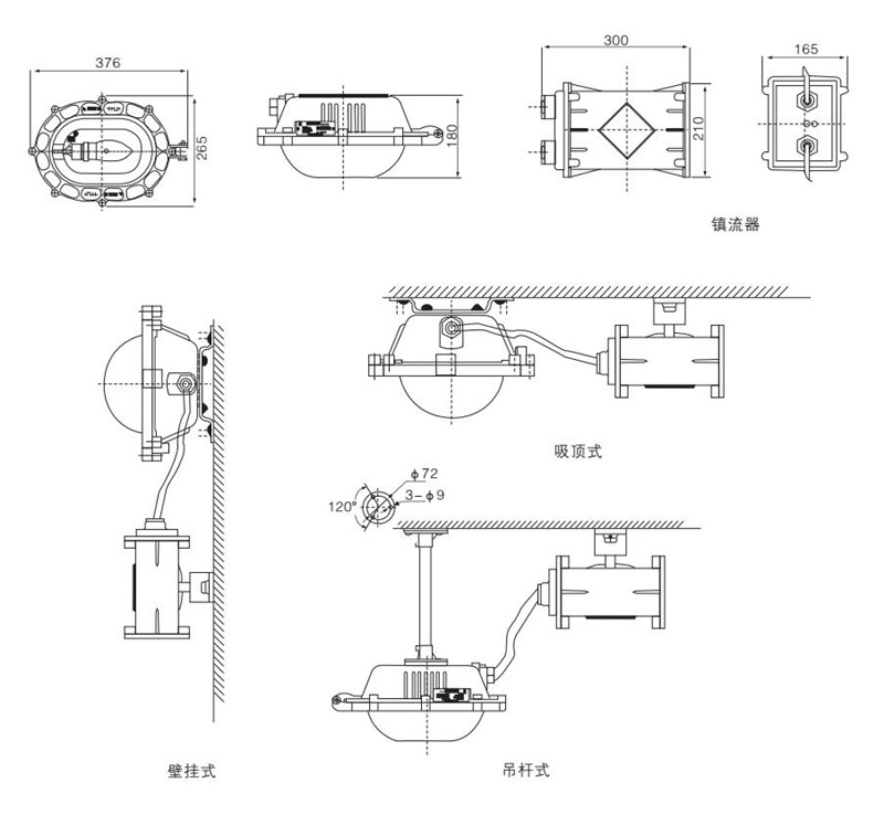 ●體積小,重量輕,可采用吊桿式、壁掛式、吸頂式和燈桿式等多種安裝方式,操作簡(jiǎn)單方便。