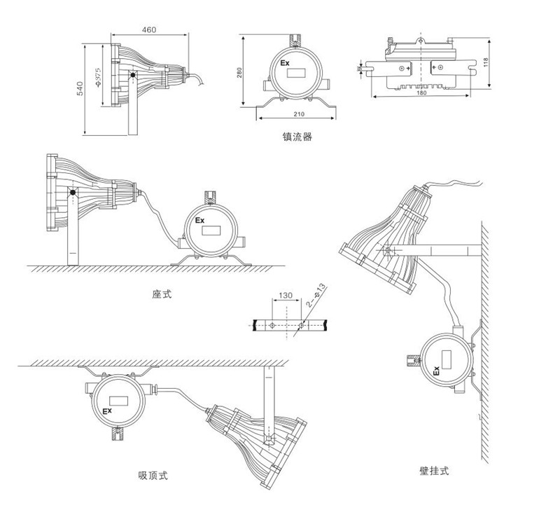 適用于各種易燃易爆場(chǎng)所安全工作,用于油田、聯(lián)合站、中轉(zhuǎn)站、井場(chǎng)、海上石油平臺(tái)等工作場(chǎng)所固定照明