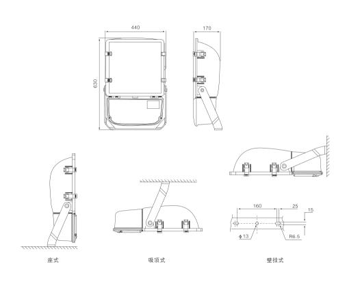 ●座式、壁掛式安裝方式,適應(yīng)不同工作現(xiàn)場的照明需要。