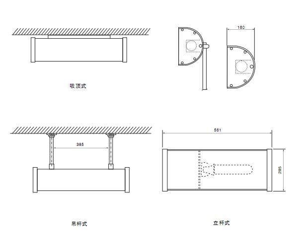 ●吸頂式、吊桿式、座式、壁掛式等多種安裝方式,操作更加簡便。適應不同工作現場照明的需要。燈具與電器箱一化設計,整體可靠性強,故障率低,使用維護更加安全方便。